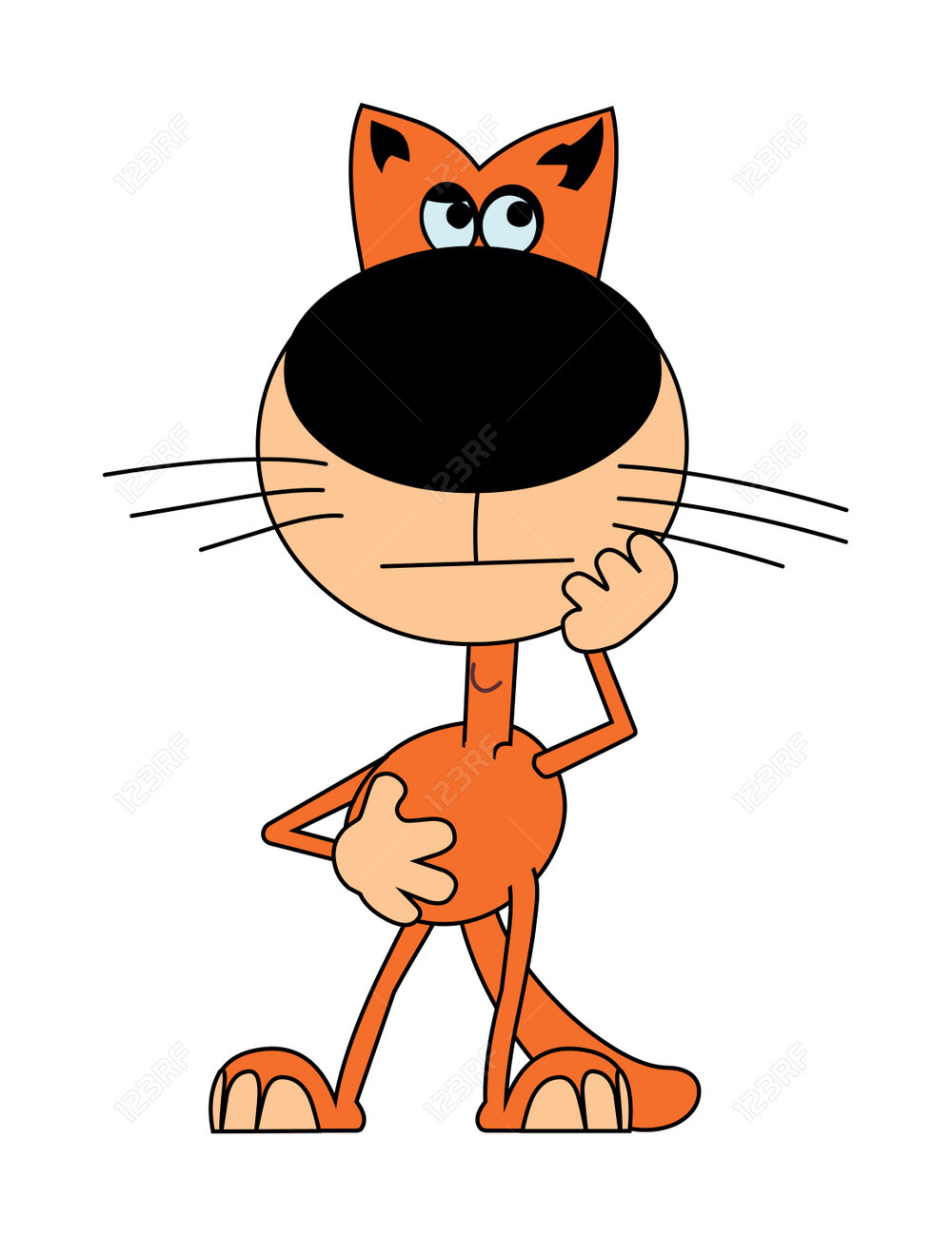 Chat Orange Pense A Quelque Chose Ce Personnage De Dessin Anime Est Isole Sur Fond Blanc Clip Art Libres De Droits Vecteurs Et Illustration Image